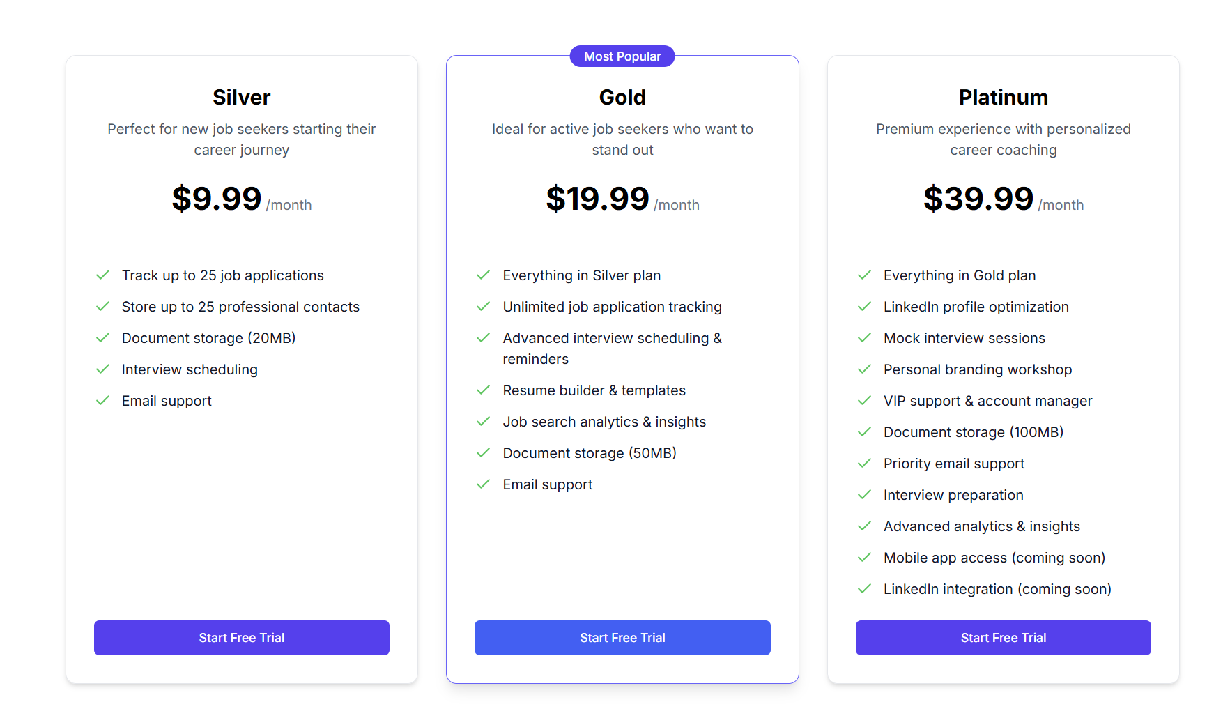 - Platinum Plan - Premium features for comprehensive job search management